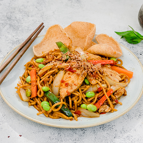 Whether you spell it mi goreng, mie goreng, or mee goreng, it all translates to ‘fried noodles,’ and is generally a spicy dish. Believed to be introduced to Indonesia by Chinese immigrants, it is thought to have been derived from chow mein. The dish commonly uses yellow egg noodles and a variety of meats – typically what is on hand or left over for most home cooks. It gets its spice from the chilli sambal, and is slightly sweetened by the sweet and sticky kecap manis (sweet soy sauce).