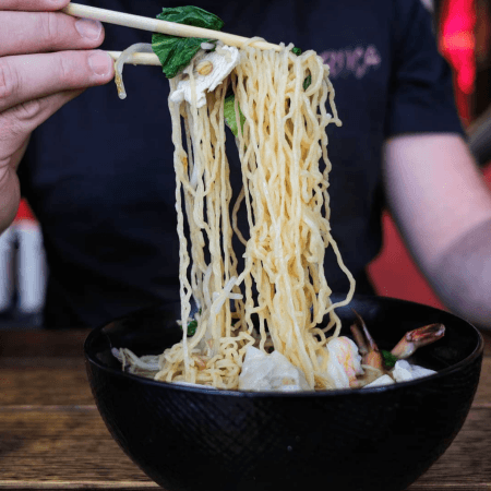 Pad Thai at P’Nut takes over 2.5 hours to create and is a two-part process. First, we make our fragrant Pad Thai sauce and let it simmer for over 2 hours to let the flavours build up.  Then we mix it with noodles, tofu, and choice of protein. Our version of this traditional dish perfectly balances sweet and sour with a hint of chilli.